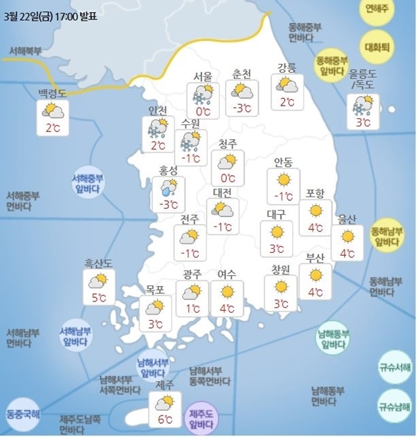 이어 "일부 지역에는 눈이 내리겠으니 건강관리에 유의해야 한다"고 덧붙였다.