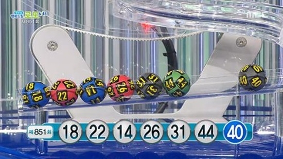 23일 추첨된 로또 851회의 당첨번호는 14, 18, 22, 26, 31, 44, 보너스번호 40으로 8명의 1등 당첨자가 탄생했다.