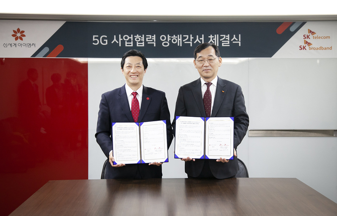 SK텔레콤과 SK브로드밴드, 신세계아이앤씨는 2일 신세계그룹 백화점·마트·복합쇼핑몰·식품 등 분야에서 5G 기반의 사업모델을 개발하고 혁신적 미래형 서비스를 선보이는 데 협력하는 내용의 양해각서(MOU)를 체결했다.