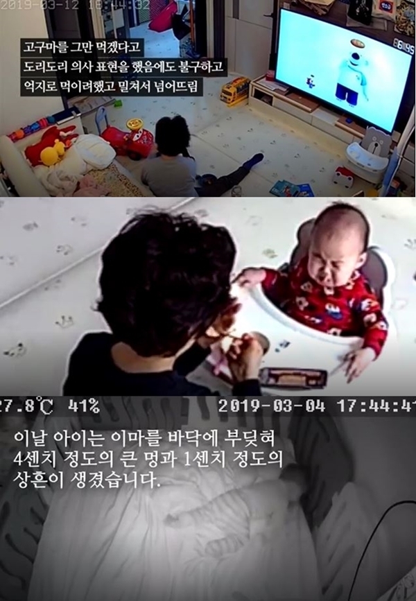 A 씨는 한살배기 아동이 칭얼거리거나 가만히 있어도 손찌검, 숟가락에 담겨진 이유식을 손바닥으로 정리하거나 먹기를 거부하면 무력을 행사했다.