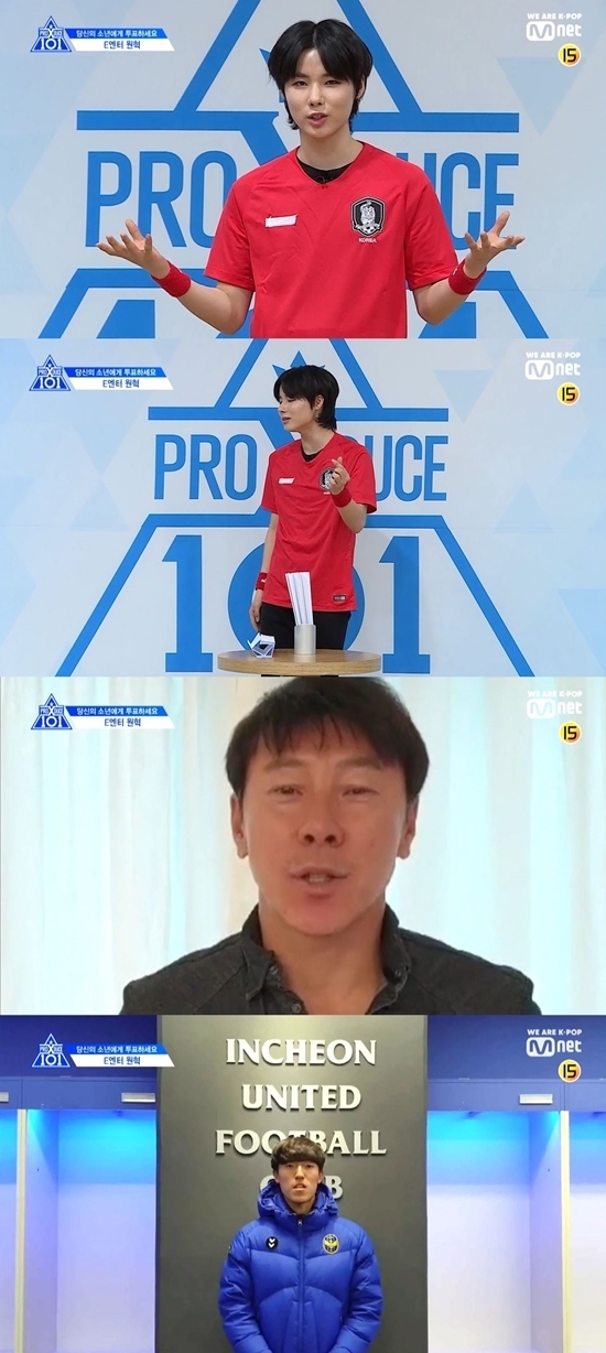 특히 E엔터테인먼트 소속 연습생 원혁은 축구선수 출신이라는 독특한 이력으로 국민 프로듀서의 마음을 사로잡았고, 원혁 연습생의 지원군으로 축구감독 신태용과 축구선수 김진야가 깜짝 등장해 놀라움을 자아냈다.