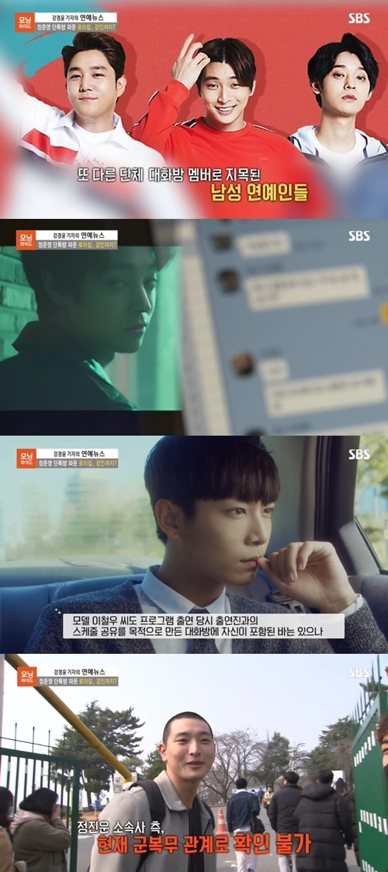 4일 SBS '모닝와이드'에서는 정준영, 강인, 정진운, 이철우의 단톡방에서 불법 촬영물과 성희롱적인 대화가 오갔다는 사실이 보도됐다.