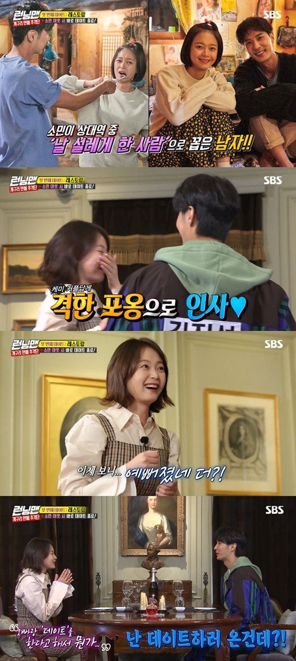 이날 그는 환하게 웃으며 데이트 장소에 도착, 이어 전소민을 안아주며 "더 예뻐졌다"라고 반가움을 표했다.
