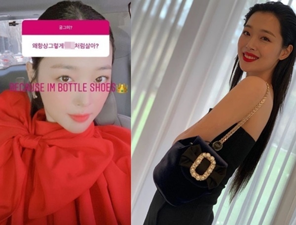 이에 설리는 "BECAUSE IM BOTTLE SHOES" 등 해학적인 답변을 담담하게 남겨 오히려 보는 이들을 통쾌하게 만들었다.