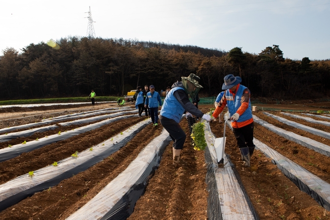 같은 날 충북 청주시 미원면의 잎담배 농가를 방문한 KT&G 김천공장 임직원 봉사자 20여 명도 지병으로 거동이 불편한 농민을 도와 7933㎡(2400평)의 농지에서 잎담배 이식 봉사를 실시했다.