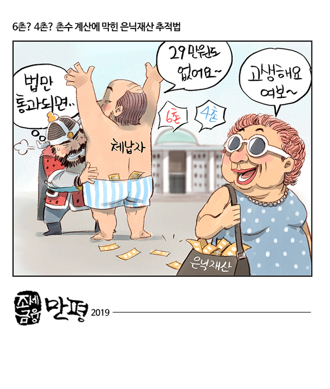[조세금융만평]은닉재산 추적, "촌수가 그리 중한가?"