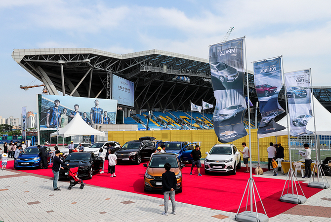 한국GM은 11일 인천축구전용경기장에서 열린 인천유나이티드의 홈경기에 스파크, 말리부, 트랙스, 볼트 EV 등 쉐보레 주력 차종과 올해 출시될 트래버스 및 콜로라도를 전시하고 경품을 제공하는 등 대대적인 판촉 활동을 펼쳤다고 12일 밝혔다.