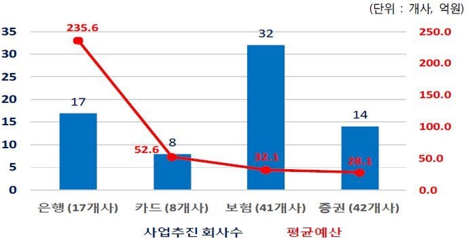 증권사는 42개사 중 14개사(33.3%)만이 디지털 전환 사업을 추진한다. 총 배정 예산은 392억7000만원이며 추진 사업 수는 29건이다.