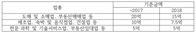 - 약국은 도소매업에 해당하므로 15억을 기준으로 대상자 여부를 판정함
