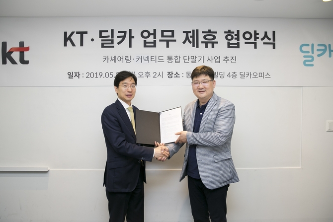 (조세금융신문=김성욱 기자) KT는 27일 여의도 딜카 사옥에서 차량공유 플랫폼 딜카와 중소렌트사 카셰어링 서비스 사업 활성화를 위한 업무협약(MOU)을 체결했다고 밝혔다.