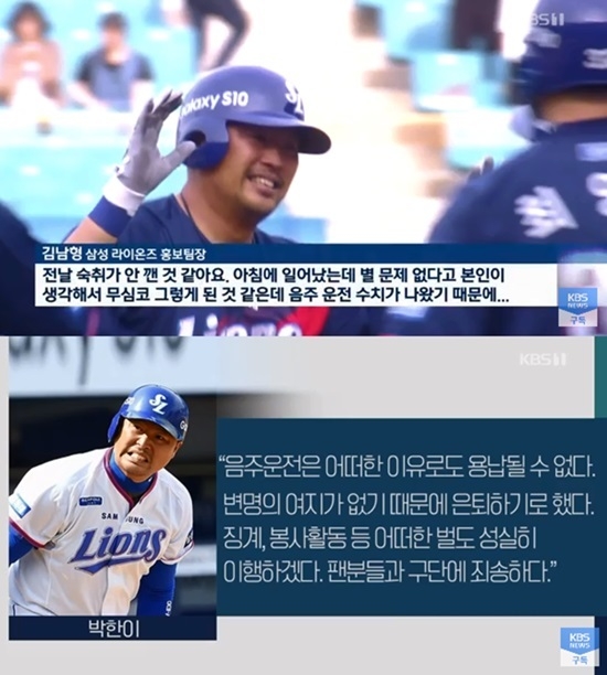 (조세금융신문=김효진 기자) 술에 취한 상태로 차량을 몰아 추돌 사고를 일으킨 삼성 라이온즈 박한이가 은퇴를 결정했다.