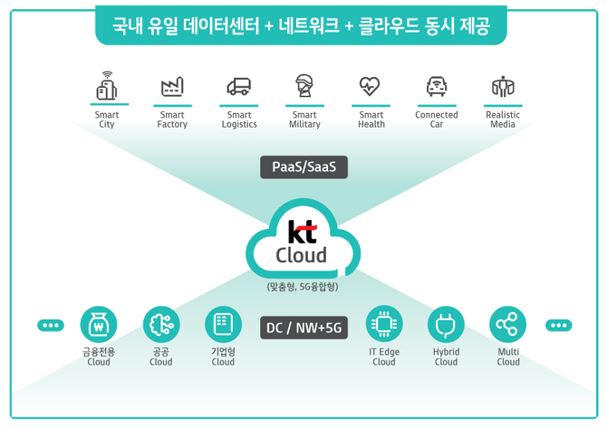 이 단장은 “KT는 국내 최대 데이터센터, 네트워크 인프라를 기반으로 클라우드와 PaaS·SaaS를 통합적으로 제공할 수 있는 유일한 사업자”라며 “자체 클라우드가 없는 타 통신사, 5G 네트워크가 없는 글로벌 클라우드 사업자와 달리 가장 효과적인 서비스를 제공할 수 있다”고 강조했다.