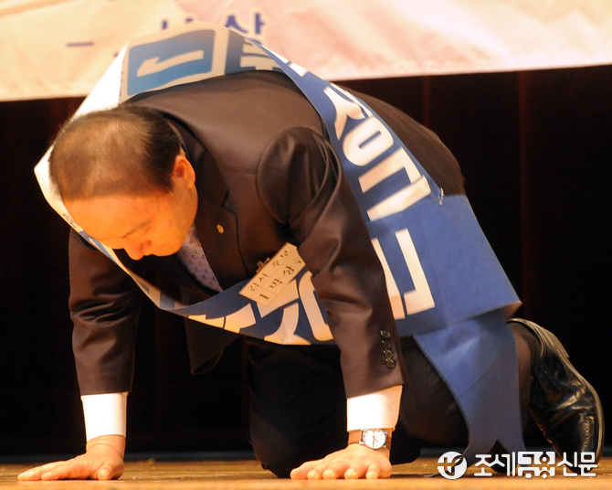 (조세금융신문=김용진 기자)박상근 한국세무사회 감사 후보가 25일 오후 부산 벡스코에서 열린 한국세무사회 감사 선거에서 부산지역 세무사들에게 큰 절을 올리고 있다.