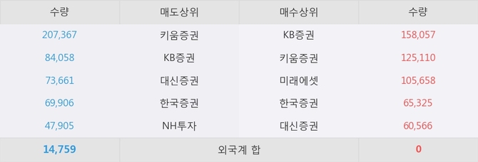 이 시각 주요 거래원은 NH투자, 키움증권, KB증권 등이 매도 상위 창구에 자리하고 있다.