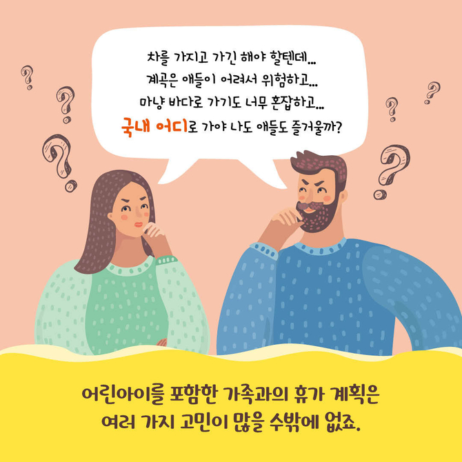 어린아이를 포함한 가족과의 휴가 계획은 여러가지 고민이 많을 수밖에 없죠.