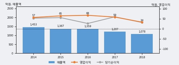 최근 3년간의 실적을 살펴보면, 매출액은 3년 연속 하락하고 있으나 그 하락폭은 줄어들고 있음을 알 수 있다.