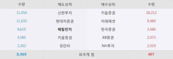 메릴린치가 매도상위 창구 3위를 기록중이고, 그 외에 신한투자, 현대차증권 등이 매도 창구 상위에 위치하고 있다.