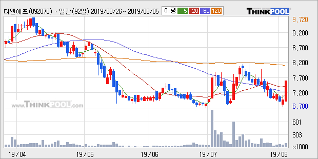 디엔에프는 2018년 매출액 742억원과 영업이익 148억원을 기록했다. 전년대비 매출은 -0.2%, 영업이익은 -2.1% 각각 하락했다. 이 회사의 매출액 증감률과 영업이익 증감률은 각각 코스닥 하위 41%, 상위 48%에 해당된다.