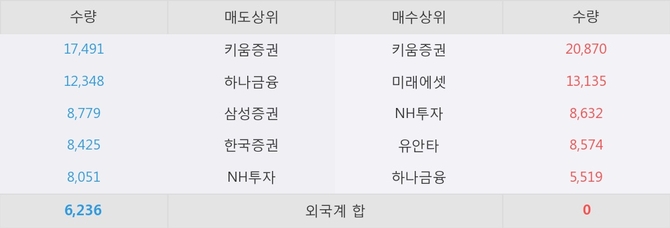 거래원 동향은 하나금융, 삼성증권, NH투자 등이 매도 상위 목록에 나타나고 있다.