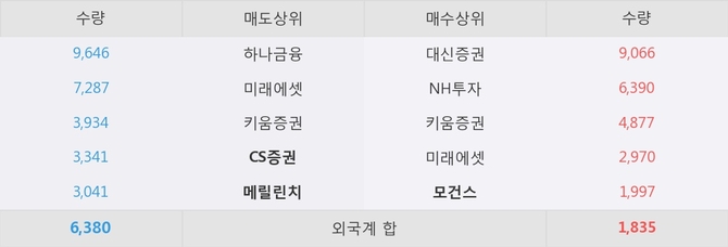 거래원 동향은 CS증권, 메릴린치, 하나금융 등이 매도 상위 목록에 위치하고 있다. 한편, 매수 창구 상위에는 모건스가 눈에 띄고 있다.