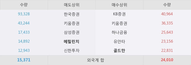 거래원 동향은 메릴린치, 삼성증권이 매도 상위 목록에 나타나고 있다. 한편, 매수 창구 상위에는 골드만이 눈에 띄고 있다.