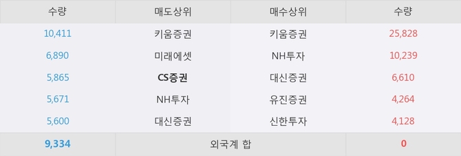 거래원 동향은 CS증권, 미래에셋, NH투자 등이 매도 상위 목록에 나타나고 있다.