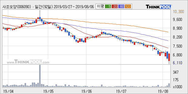 사조오양의 2018년 매출액은 2962억으로 전년대비 -4.5% 하락했고, 영업이익 역시 125억으로 전년대비 -48.3% 하락했다. 이 회사의 매출액 증감률과 영업이익 증감률은 각각 코스피 하위 22%, 하위 22%에 해당된다.