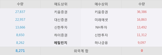 거래원 동향은 미래에셋, NH투자, 하나금융 등이 매수 상위 목록에 나타나고 있다. 한편, 매도 창구 상위에는 메릴린치가 눈에 띄고 있다.