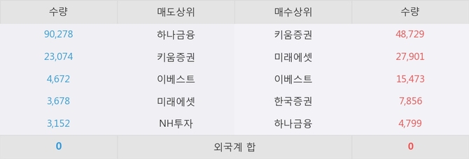 거래원 동향은 하나금융, 미래에셋, NH투자 등이 매도 상위 목록에 나타나고 있다.