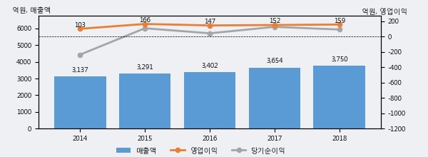 최근 3년간의 실적을 살펴보면 안정적 성장세를 보이고 있다. 최근 3년간 매출로 볼 때 매년 꾸준히 증가하고 있다. 다만 최근에 그 증가폭이 다소 감소하고 있다.