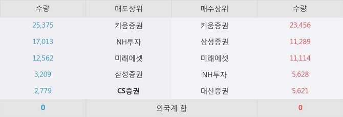 거래원 동향은 삼성증권, 미래에셋, NH투자 등이 매수 상위 목록에 나타나고 있다. 한편, 매도 창구 상위에는 CS증권이 눈에 띄고 있다.