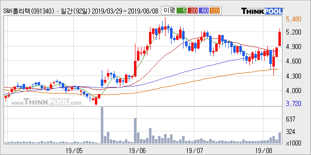S&K폴리텍의 2018년 매출액은 전년대비 58.0% 늘어난 2822억원이고, 영업이익 또한 전년대비 37.6% 늘어난 135억원을 기록했다. 이 회사의 매출액 증감률과 영업이익 증감률은 각각 코스닥 상위 8%, 상위 27%에 해당된다.