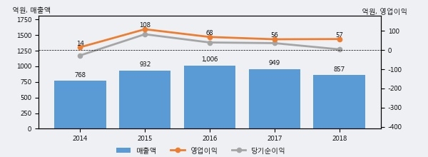 비디아이의 2018년 매출액은 857억으로 전년대비 -9.7% 하락했고, 영업이익은 57억으로 전년대비 2.0% 상승했다. 이 회사의 매출액 증감률과 영업이익 증감률은 각각 코스닥 하위 24%, 상위 45%에 해당된다.