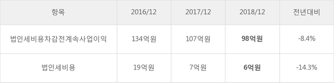 코스메카코리아의 지난 3년 동안 법인세 납부액 추이를 보면 각각 19억원, 7억원, 6억원으로 매년 감소하고 있다.