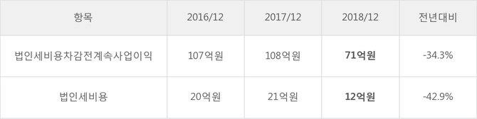 한농화성의 지난 3년 동안 법인세 납부액 추이를 보면 2017년에는 증가했으나, 작년에는 12억원으로 크게 감소했다.