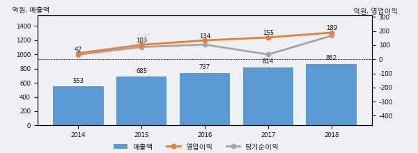 최근 3년간의 실적을 살펴보면 안정적 성장세를 보이고 있다. 최근 3년간 매출로 볼 때 매년 꾸준히 증가하고 있다. 다만 최근에 그 증가폭이 다소 감소하고 있다.