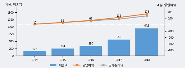 최근 3년간의 실적을 살펴보면 안정적 성장세를 보이고 있다. 최근 3년간 매출로 볼 때 매년 꾸준히 증가하고 있고 그 증가폭도 확대되고 있다.