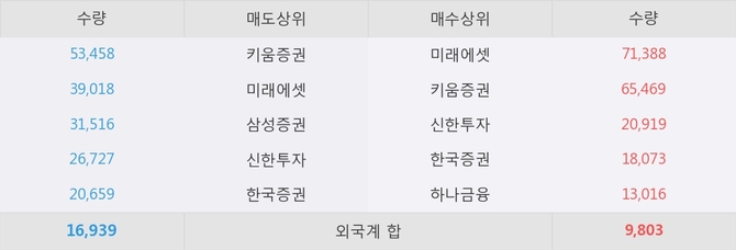 거래원 동향은 미래에셋, 하나금융 등이 매수 상위 목록에 나타나고 있다.