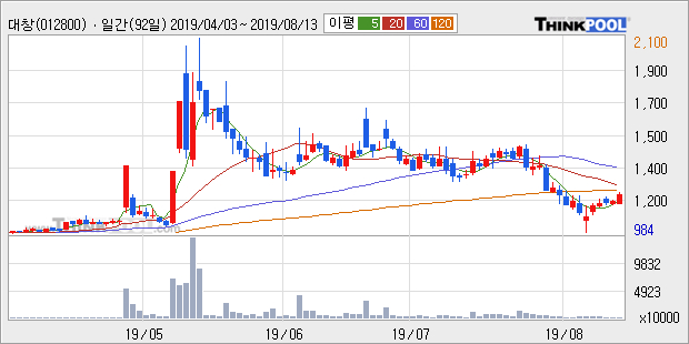대창의 2018년 매출액은 전년대비 -3.3% 줄어든 9513억원이고, 영업이익 역시 전년대비 -57.3% 줄어든 173억원을 기록했다. 이 회사의 매출액 증감률과 영업이익 증감률은 각각 코스피 하위 25%, 하위 19%에 해당된다.