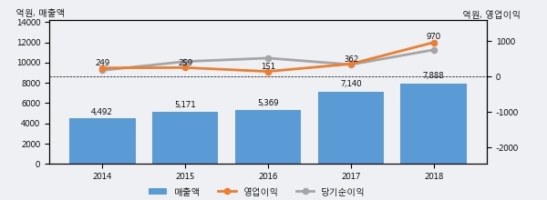최근 3년간의 실적을 살펴보면 안정적 성장세를 보이고 있다. 최근 3년간 매출로 볼 때 매년 꾸준히 증가하고 있다. 다만 최근에 그 증가폭이 다소 감소하고 있다.