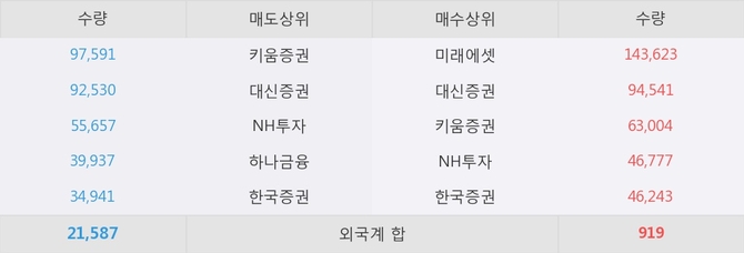 거래원 동향은 미래에셋, NH투자 등이 매수 상위 목록에 나타나고 있다.