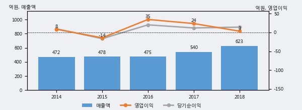 최근 실적을 살펴보면 2018년 매출액이 최근 5년 중 가장 높은 실적을 기록했음을 알 수 있다. 이전 최고 실적이었던 2017년 보다도 15.6%(83억 9천만원) 늘어난 것으로 나타났다.