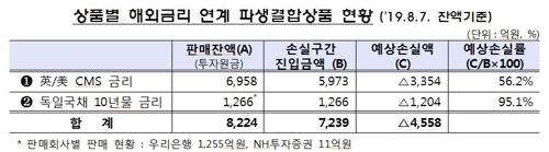 영국·미국의 CMS 금리가 하락하면서 이 가운데 5천973억원(총액의 85.8%)이 손실구간에 진입했다. 만기까지 현재 금리가 유지된다고 가정한 예상 손실률은 56.2%다.