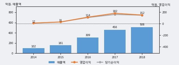최근 3년간의 실적을 살펴보면 안정적 성장세를 보이고 있다. 최근 3년간 매출로 볼 때 매년 꾸준히 증가하고 있다. 다만 최근에 그 증가폭이 다소 감소하고 있다.