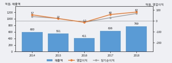 최근 실적을 살펴보면 2018년 매출액이 최근 5년 중 가장 높은 실적을 기록했음을 알 수 있다. 이전 최고 실적이었던 2017년 보다도 20.8%(132억 4천만원) 늘어난 것으로 나타났다.