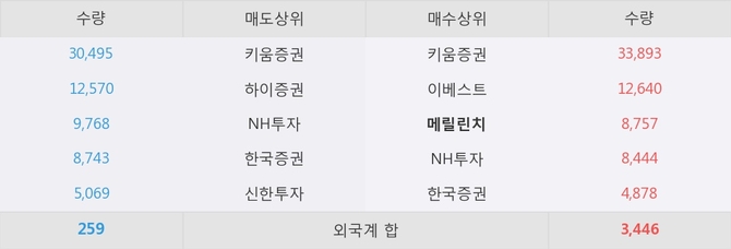 거래원 동향은 메릴린치, NH투자가 매수 상위 목록에 나타나고 있다.
