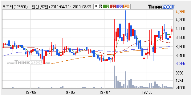 코프라는 2018년 매출액 1614억원과 영업이익 63억원을 기록했다. 전년대비 매출은 19.7% 상승했고, 영업이익은 -24.2% 하락했다. 이 회사의 매출액 증감률과 영업이익 증감률은 각각 코스닥 상위 24%, 하위 41%에 해당된다.