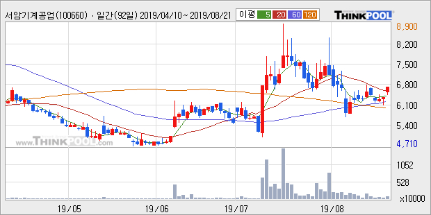 서암기계공업의 2018년 매출액은 전년대비 3.9% 늘어난 425억원이고, 영업이익 또한 전년대비 32.3% 늘어난 31억원을 기록했다. 이 회사의 매출액 증감률과 영업이익 증감률은 각각 코스닥 상위 50%, 상위 28%에 해당된다.