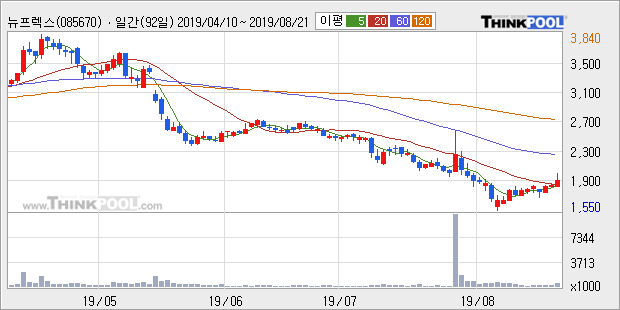 뉴프렉스의 2018년 매출액은 전년대비 28.0% 늘어난 1955억원이고, 영업이익 또한 전년대비 49.2% 늘어난 106억원을 기록했다. 이 회사의 매출액 증감률과 영업이익 증감률은 각각 코스닥 상위 17%, 상위 24%에 해당된다.
