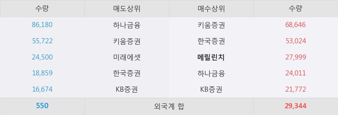 거래원 동향은 메릴린치, 하나금융이 매수 상위 목록에 나타나고 있다.